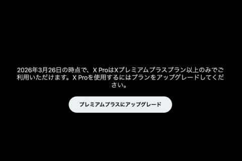 複数のタイムラインを並べて表示できるXのクライアントアプリ「X Pro」の対象プランが急遽変更され、これまで対象だったユーザーが利用できなくなった。月額918円の「プレミアム」プランで利用可能だったものが、日本時間の27日早朝ごろから月額6,080円の「プレミアム プラス」の契約者のみの対応となり、プレミアム契約者は利用できなくなっている。