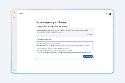 Geminiでは、メモリー機能を提供しており、ユーザーのAI利用履歴を学習し、より個人のコンテキスト(文脈)に沿った回答を行なうようになっている。この機能を他のサービスから移行した際にも使いやすくする、「メモリーインポート」(memory import)を提供開始。他のAIアプリから記憶、文脈、チャット履歴をGeminiに直接簡単に移行できるようにした。