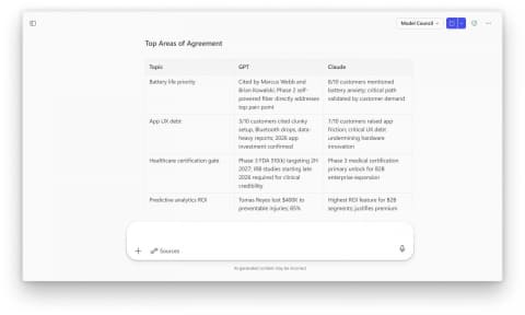 また、新しい「モデル・カウンシル」機能では、異なるモデルからの回答を並べて比較し、一致点や相違点、各モデルが独自に提供する価値を把握できるようになる。