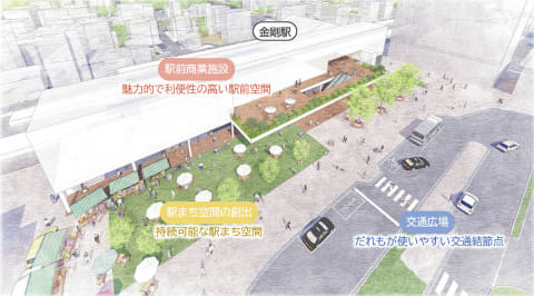 南海電鉄、大阪狭山市、富田林(とんだばやし)市は、金剛駅周辺の再整備で協力する。駅周辺での商業施設開業、駅舎・駅前交通広場などの全面リニューアルを通じて、まちの魅力向上を図る。