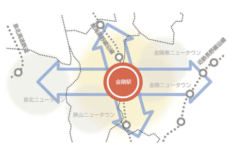 一方で、金剛駅の1日の平均乗降人員は1995年をピークに減少傾向にある。今後の人口減少や少子高齢化による乗降人員数のさらなる減少も考えられ、郊外拠点エリアとしてのポテンシャルの低下や、まち全体の魅力低下が懸念されてきた。