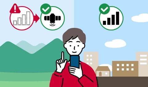 docomo Starlink Directの利用にはソフトウェアのアップデートとドコモのSIMが必要。ドコモの4G/5GエリアまたはWi-Fi接続の状況下を除き、遮蔽物がない屋外で利用できる。