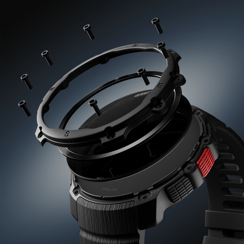 本体ボディは8本のネジで固定するフレーム構造を採用。米軍規格「MIL-STD-810H」に準拠し、耐衝撃性や耐水性・耐熱性など、高い耐久性を備える。防水性能は50m防水。重量はバンドを含めて48gという軽量設計。