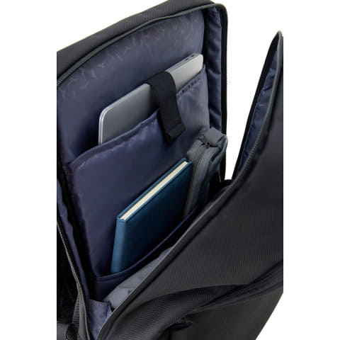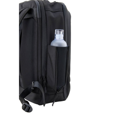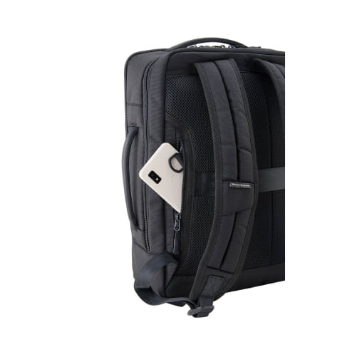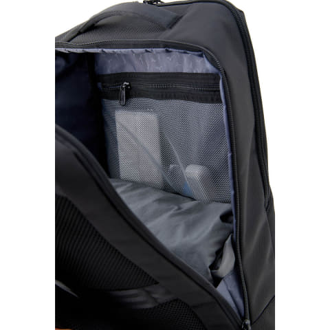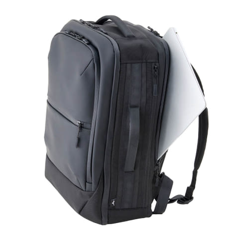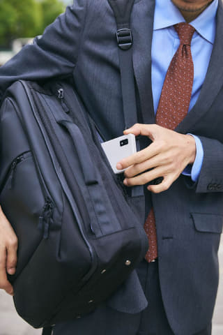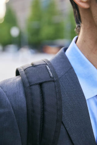 Biztrip バックパックは、ガジェットや小物を整理しやすいオーガナイザーポケットやフックなどを装備。PCポケットは横持ちでもスムーズに取り出せるよう、大きく開く設計にした。そのほか、折りたたみ傘やボトルを収納できるサイドポケット、背中側に貴重品向けのシークレットポケットを装備する。