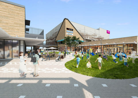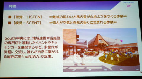 South中央には屋外広場「noNIWA」を整備。面積は約560m2で、地域や施設の専門店と連携したイベント、キッチンカーを展開する。また、子供の遊び場として地面の起伏を利用したゾーンやインクルーシブ遊具を設置する。