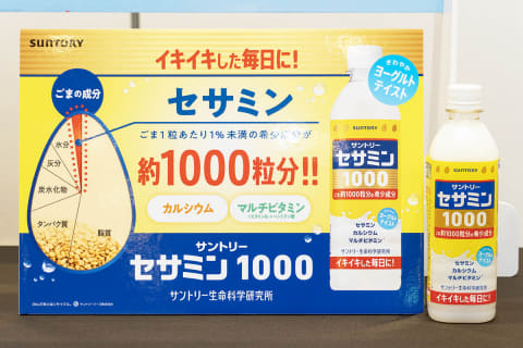 セサミン1000は、ゴマ由来のポリフェノールの一種であるセサミンを、1本あたりゴマ約1,000粒分配合。カルシウムやビタミンも加え、複数の栄養素を一度に摂取できる設計とした。様々なシーンで日常的に飲めるよう、さわやかなヨーグルトテイストに仕上げた。