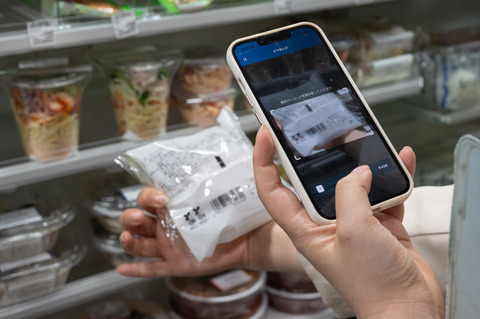 オフィスローソンのもうひとつの大きな特徴は、決済をすべて専用スマートフォンアプリで行なう「スマホレジ」を導入している点。ビーコンによる自動チェックインが基本で、スマホで商品のバーコードを読み取って決済する。アプリでは割引やクーポンの提供も可能。