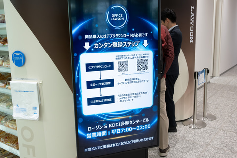 KDDI高輪本社17階の「ローソンS KDDI高輪本社店」は、利用する社員の平均滞在時間が2分と、非常に短いことが明らかになっている。使い慣れた社員は、あらかじめ決めておいた商品をピックアップしてスマホで決済しすぐに退店するとのことで、スマホレジの仕組み自体が混雑緩和に貢献しているとのことだった。