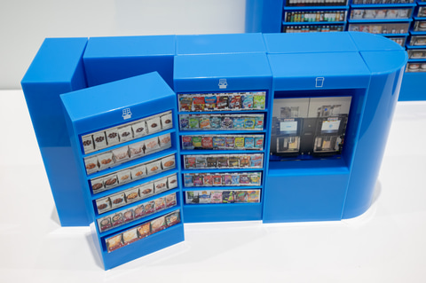 KDDI多摩センタービル店で実証実験が行なわれる新しい形態は、商品棚を「ユニット」として柔軟に組み合わせられる「ユニット型店舗」。施設やオフィスに合わせて棚の内容を柔軟に変更可能で、工場で作られた棚を搬入し設置するだけで、電源さえあれば“ミニコンビニ”を設置できるのが特徴。
