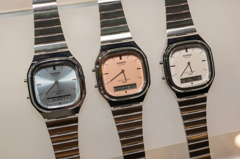 2025年10月に発売された、レトロモダンな「AQ-240E」のカラーバリエーション。穏やかなウォームトーンがテーマで、サンレイ仕上げの淡いブルー(AQ-240E-2AJF)、マット仕上げのパステルオレンジ(AQ-240E-4AJF)、マット仕上げのミニマルなホワイト(AQ-240E-7A2JF)の3種類がラインナップされる。