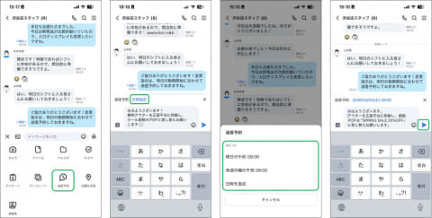 送信予約は、最短15分後〜最大7日後の範囲で、15分単位(毎時00分/15分/30分/45分)で指定したタイミングにメッセージを送信できる。1アカウントあたり最大10通の予約に対応し、対応期限の一斉周知や、タスクのリマインド通知にも活用できるという。