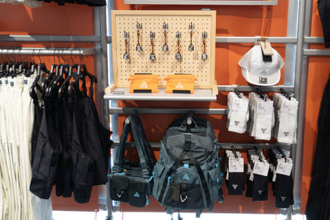 ACGは、原宿でポップアップを展開したことがあるが、常設は新宿のみ。各種アパレルからポーチや鈴「ACG BEAR BELL」などの小物まで、幅広く取り扱う。