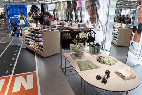 規模は1~4階の4フロア。メンズ/ウィメンズをフロアやエリアで区分せずに、スポーツカテゴリーやプロダクトごとの構成、陳列となっている。