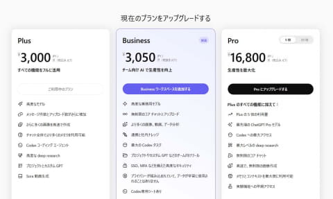 今回のプラン追加で、PlusとProの役割分担も明確化。Plusは、日常的な安定した利用のほか、Codexやdeep researchなどが利用可能。Codexの利用も、週全体でより多くのセッションをサポートする形とする。