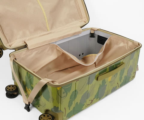 エース、"電車キャンプ向け"スーツケース 収納部を外して洗える