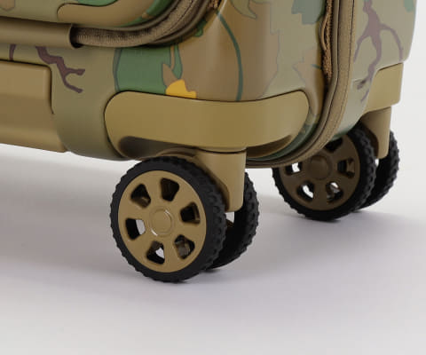 デザインは、葉や雲をモチーフにした迷彩柄を採用。自然には溶け込みやすく、空港では見つけやすいデザインとする。
