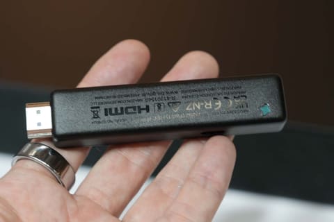 ストリーミングデバイス「Fire TV」のエントリーモデルで、新OS「Vega OS」を搭載して、ユーザーインターフェースを一新したほか、ボディは大幅にスリム化した。横幅は前モデルと比較して約30%スリムとなり、HDMIポートに近いサイズになった。これにより、テレビとの接続時も隣のHDMIポートに干渉しづらく、テレビ背面にすっきりと設置できるようになった。