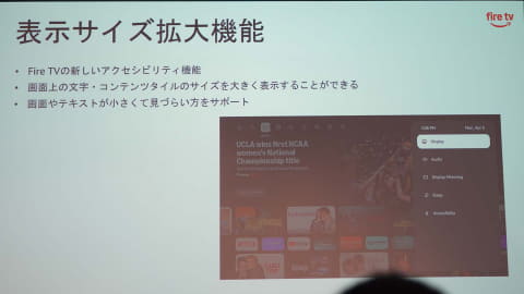 また、新たなアクセシビリティ機能も搭載。画面上の文字やコンテンツ動画サムネイルを大きく表示するといった設定も可能になる。