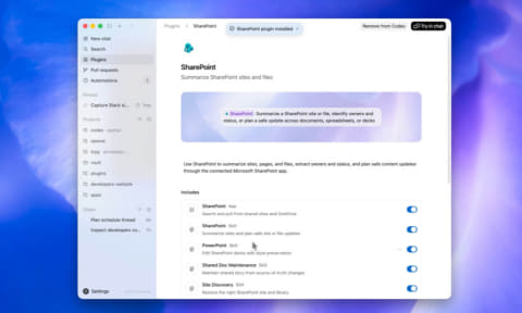 90種類以上のプラグインも追加。スキルやアプリ連携、MCPサーバーと組み合わせて、Codexにコンテキストを追加できるようになり、Atlassian Rovo、CircleCI、CodeRabbit、GitLab Issues、Microsoft Suite、DatabricksのNeonなどが対応する。