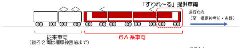 南大阪線、吉野線、長野線、御所線で運行を開始する新型一般車両 6A系を活用。平日夕方ラッシュの18時50分に大阪阿部野橋駅を発車する吉野行き急行の先頭車1両をサービス提供車両とし、座席はクロスシートにて運行する。「すわれ~る券」を持っていない人はサービス提供車両への立ち入りはできない。