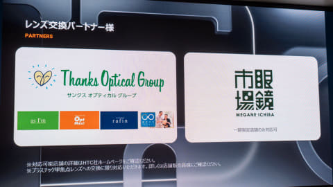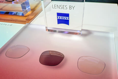 レンズはZEISS製で、UV400対応のサングラスレンズやクリアレンズのほか、調光レンズも用意。眼鏡店で度付きレンズへの交換も可能で、サンクスオプティカルグループおよび眼鏡市場の一部店舗で受け付ける。