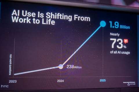 同氏は、AI活用では仕事での生産性や効率性の向上が注目されがちだが、実際には個人的な用途での利用が多いと述べた。OpenAIの調査では、AIとのやり取りの73%が仕事とは無関係だったといい、ハーバード大学の調査でも、AIの主な利用目的として個人的な用途が上位に挙がったと紹介した。