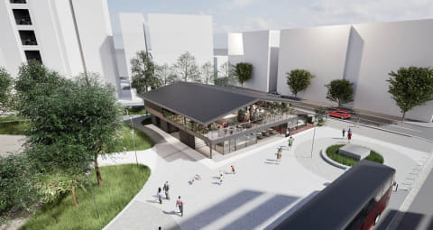 福岡市は周辺エリアの回遊性向上や賑わい創出、観光客や公園利用者の利便性向上等を目的に、出来町公園内の休憩スペース等の受け入れ環境整備、および観光バス乗降場の運営について、民間事業者を公募。同事業の優先交渉権者を、HAKATA 縁(EN) TERRACEを提案したプレジデントハカタを代表とするグループに決定した。