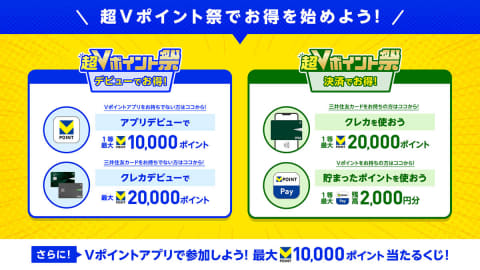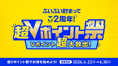 Vポイントマーケティングと三井住友カードは、「Vポイント」の2周年を記念した「超Vポイント祭」を、4月22日から6月30日まで実施する。