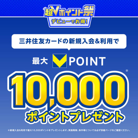 三井住友カードは、新規入会で一般は1,000ポイント、ゴールド(NL)は3,000ポイント、プラチナプリファードは6,000ポイントを付与。さらに、入会月の1カ月後末までの利用金額の10%を還元する。付与上限は一般は5,000ポイント、ゴールド(NL)は7,000ポイント、プラチナプリファードは12,000ポイント。