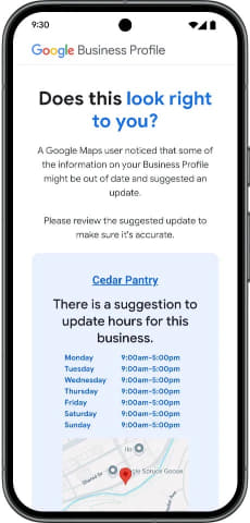 さらに、今月から、ビジネス プロフィールの認証済みのアクティブなオーナー(アカウント)を対象に、修正提案について事前に通知するメールアラートの提供を順次開始する。これにより、ビジネス プロフィールに対する重要な変更が公開される前に、オーナー自身で内容を確認できるようになる。