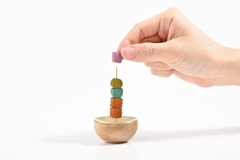 お香を積み上げて、お香の燃焼によって「時間の移ろい」を視覚と嗅覚で感じるお香時計。慌ただしく過ぎゆく日常の中で自分のリズムを取り戻してほしいという思いから生まれた。