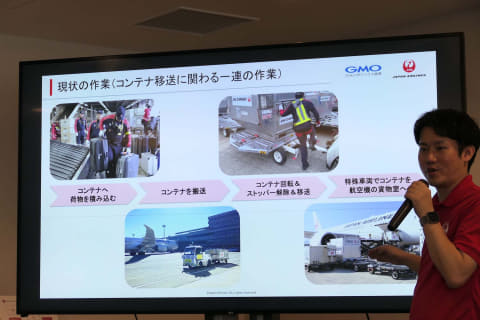 プロジェクト担当者のJALグランドサービスの吉岡智也氏は、ヒューマノイド、GMO AIRを選定した理由、現状の作業と今後の展望を紹介した。