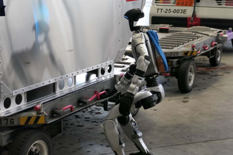 グランドハンドリングは多くの人手が使われている複雑な作業であり、これまで革新が進んでいなかった。専門設備はもちろん必要だが、いっぽうでヒューマノイドは人間が使うことを前提として設計されている既存インフラを有効活用可能であり、一台で何役もこなせる可能性がある。
