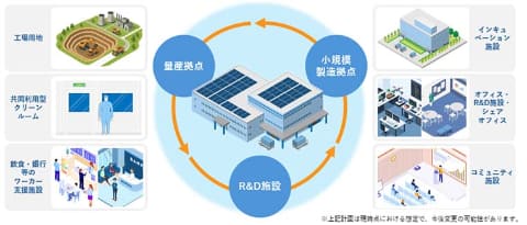 プロジェクトでは、半導体企業のニーズに対応するため、R&Dから量産までを支える施設・機能を整備。前工程・後工程・製造装置等の半導体に関わる企業の誘致を推進し、半導体サプライチェーンの強化を図る。インキュベーション施設や、共同利用型クリーンルーム、オフィス・R&D施設のほか、シェアオフィスや飲食・銀行等のワーカー支援施設も整備する。