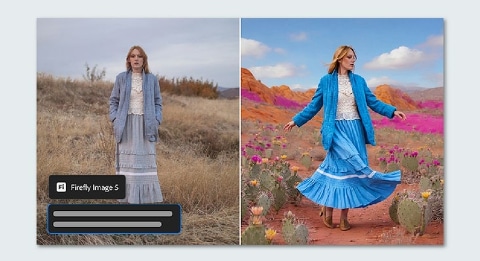 生成AI機能では、Adobe Fireflyの新モデル「Firefly Image 5」を搭載した。これまでのFireflyは選択範囲への要素追加や置き換えなど部分的な編集が中心だったが、新モデルでは画像全体のスタイル変更や整形に対応する。写真全体のトーンや質感の統一、ビジュアル全体の方向性変更などを、より自然で一貫性のある形で行なえる。
