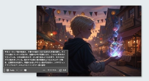 このほか、生成塗りつぶしと生成拡張のコンテキストタスクバーも機能を強化。Gemini 2.5 / 3.0(Nano Banana)、FLUX Kontext Pro、FLUX.2 Proでは「参照画像」を使った生成に対応し、既存のビジュアルを基に一貫性のある画像生成が可能になった。さらに「Gemini 3.1(Nano Banana 2)」も新たに搭載した。
