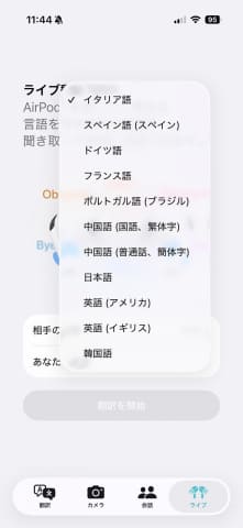 - あなたの言語: AirPodsで聞きたい言語。