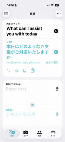 音声のリアルタイム翻訳だけでなく、iPhoneの「翻訳」アプリを使えば、翻訳している音声をリアルタイムでテキストで確認しながら、話すこともできます。