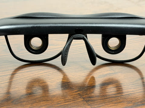 ただし、外側の枠がなくなったわけではないのは変わりません。枠の存在感は相変わらずありますので、枠が気にならない、ということはありません。特に、手作業時に視野の下の方を見る場合は、首を曲げる角度に限界があることから少し苦手に感じました。センサーがレンズの上側(眉間のあたり)にあるので、特に手元の作業ではどうしても下側にある物体に対して死角ができてしまい、フォーカスが合いにくい場合があります。そういう場合はレンズの位置を下向きに少しずらすなどの工夫が必要です。