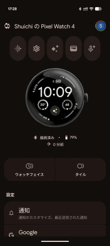 全体的にカラフル感が増し、クイック設定パネルや、「タイル」と呼ばれるショートカット機能はGoogle製アプリを中心に、デザイン刷新が進んでいます。Pixel Watchを旧モデルから使いこんでいる方なら、より新鮮で、楽しく使えると思います。