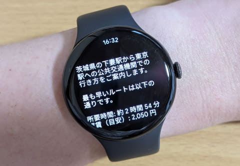 Pixel Watchも例外ではありません。2年前に発売されたPixel Watch 2でも、それまでのGoogle アシスタントと入れ替わるようにGeminiが導入されました。サイドボタン長押しで機能がオンになり、話しかけると文字・音声の両方で結果を出力してくれます。