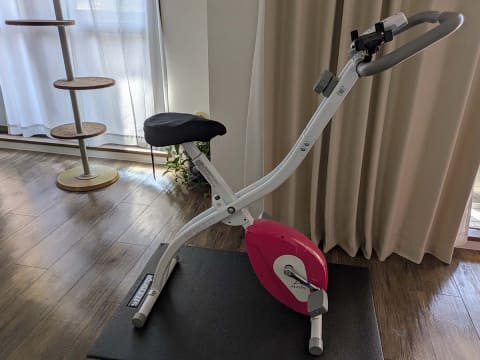 さっそくApple Fitness+レポートと行きたいところですが、まずは筆者のスペックをご紹介しましょう。筆者は幼い頃から運動が大嫌いな50代女性です。フリーランスなので家から一歩も出ないこともよくあります。家にはコロナ禍に購入したフィットネスバイクもありますが、物干しとして活躍している有様でした。