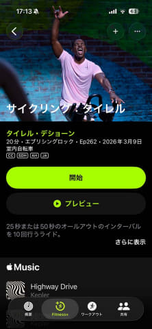 さらにランニングもしたいと思ったのですが、現在は外でのランニングは提供されておらず、マシンで行なう「トレッドミル」のみになっています。トレッドミルはウォーキングのように画面が暗くなっても音声が再生され続けることがないため、屋外のランニングには利用できませんでした。Appleに確認したところ、まもなく日本にも屋外ランニングがサポートされるとのことです。