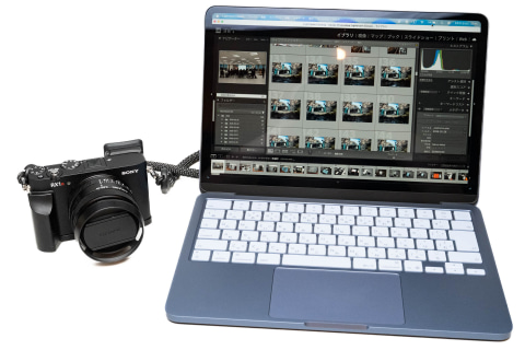 重たいデータの取り込みに際してはカードリーダーを別途用意した方が作業効率はいいのですが、MacBook NeoのUSB Type-C端子は2つ、それも高速なUSB 3に対応した端子は1つだけとなり、他の機器も繋ぎながら写真の取り込みもするには、別途USBハブなどが必要になる点は不便に感じました。ただし、取り込んだあとの編集作業はかなりサクサクと行なうことができました。