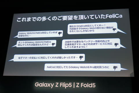 ただし、同じローカライズでも、スマホとスマートウォッチではその意味合いが変わってくる。前者は、2世代前の「Galaxy Z Fold3 5G」「Galaxy Z Flip3 5G」でおサイフケータイなどには対応済み。物理SIMとeSIMのデュアルSIMも、「Galaxy Z Fold4」「Galaxy Z Flip4」からサポートしていた。