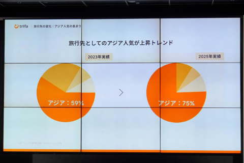 会社の経費でWi-Fiルーターをレンタルできず、家族旅行ではないため回線をシェアする必要もないという点では、まさにeSIM向き。この条件であれば、費用対効果も高い。こうしたユーザー層の拡大を受け、トリファでも、25年実績でアジア圏の国や地域のeSIMを購入するユーザーが75%まで拡大しているという。