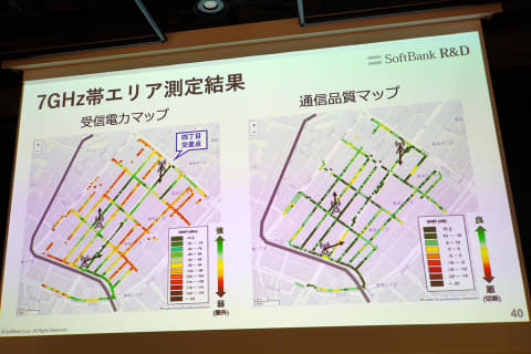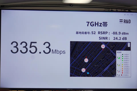 とは言え、電波が飛ばないぶん、基地局同士の干渉が少なくなり、通信品質は向上した。品質がよく、MIMOがしっかり機能するエリアも、23.5%存在したという。実際、試験エリアで車に同乗し、電波状況を見てみたが、きちんと通信が継続しており、スループットも100MHz幅で200Mbpsほど出ていた。7GHz帯は「マクロ置局でもかなり有効に使えるため、今後、6Gを早期展開し、効率的に使う上で重要な周波数になる」というのがソフトバンクの見立てだ。