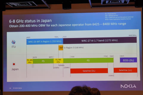 一方、日本では「FPU(テレビ中継用無線装置)で使っていたり、Wi-Fiに割り当てようとする動きもあったりで、一筋縄ではいかない」(ノキア 高岡氏)というのが現実だ。また、7.1GHz帯より上は、衛星通信でも活用されている。