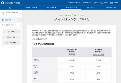 住信SBIネット銀行を使う理由は「スマプロランク」というシステムにあります。銀行口座の利用状況によって振込手数料やATM利用料が優遇される、という仕組み自体は多くの銀行で提供されていいますが、住信SBIネット銀行の特徴はランクが低くても優遇されること。