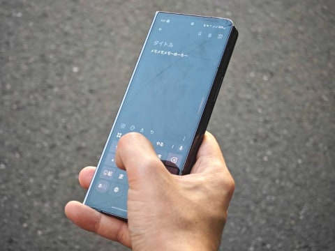 実際、満員電車のなかで吊り革につかまりながら、折りたたんだ状態の本体を片手で操作しつつ、「この原稿で何を書こうか」とアイデアをメモしていました。こうした実際の使用シーンを挙げることで、フォルダブルデバイスの利便性にいっそうの説得力が加わると感じています。